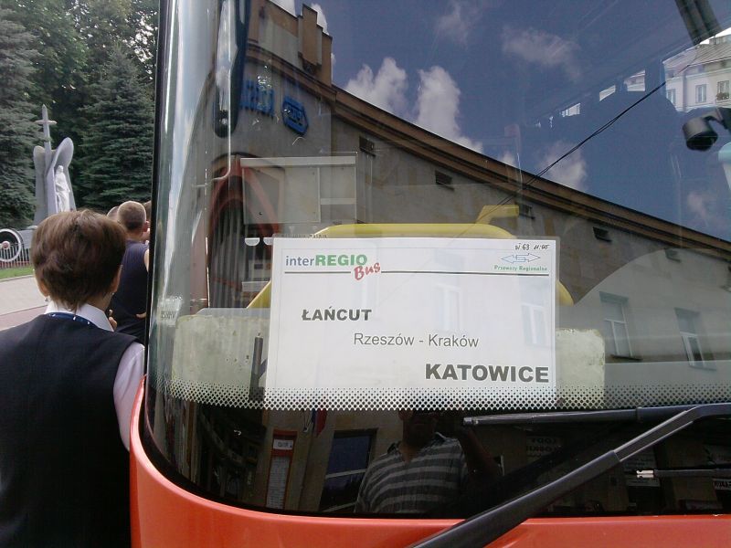 Informacje taryfowe: Na trasie Katowice - Kraków - Rzeszów - Przemyśl odprawa podróżnych realizowana jest zgodnie z Taryfą przewozową (TPR) na podstawie biletu na przejazd w kl. 2. pociągiem IR/RE: w kasach biletowych, przez obsługę konduktorską w autobusie, w automatach biletowych (znajdujących się na stacjach wyjazdu, stacjach rozkładowych postojów i stacji przyjazdu autobusów) oraz przez Internetowy System Sprzedaży. Przewóz bagażu ręcznego odbywa się zgodnie z Regulaminem przewozu (RPR) i Taryfą przewozową, z przewozu wyłączone są rowery. Na odcinkach Rzeszów - Nowy Łupków oraz Olsztyn - Mikołajki odprawa realizowana jest zgodnie z Taryfą przewozową (TPR) na podstawie biletu na przejazd w kl. 2. pociągiem IR/RE: w kasach biletowych i przez obsługę kondutorską w autobusie. Przewóz bagażu ręcznego odbywa się zgodnie z Regulaminem przewozu (RPR) i Taryfą przewozową (TPR), z przewozu wyłączone są rowery. Na odcinkach Nowy Łupków - Ustrzyki Górne oraz Kołobrzeg - Kamień Pomorski - Wysoka Kamieńska przejazd odbywa się wg specjalnej taryfy autobusowej, a bilety wydawane są wyłącznie przez kierowcę. Przewóz bagażu ręcznego z wyjątkiem rowerów, które są wyłączone z przewozu, odbywa się nieodpłatnie. |