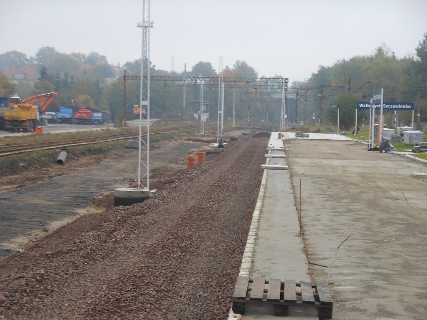 Na Wałbrzych Szczawienko trwa zgrzewanie szyn, ale roboty torowe na razie chyba dalej nie ruszą, musieli by rozebrać głowicę od strony Świebodzic. A wtedy był by jedno tor od Wałbrzycha Fabrycznego do wyjazdy ze Świebodzic, tylko z mijanką na Wałbrzychu Miasto. Ruszą raczej jak będzie ruch dwutorowy pomiędzy Miastem, a Fabrycznym. Na Wałbrzychu Centrum wszystkie pale już zamontowane, teraz trwa dalsze szalowanie, zbrojenie i betonowanie.