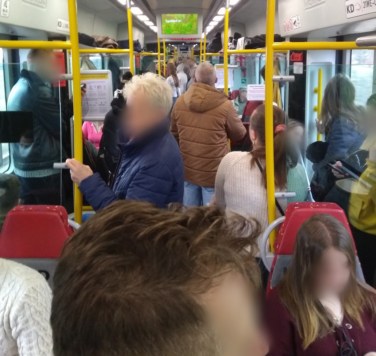 Nikt z załogi konduktorskiej nie zdołał przejść do stacji końcowej by sprawdzić bilety. Ciekawe ile osób przejechało się za darmo! W taki sposób KD tracą kolejna kasę.