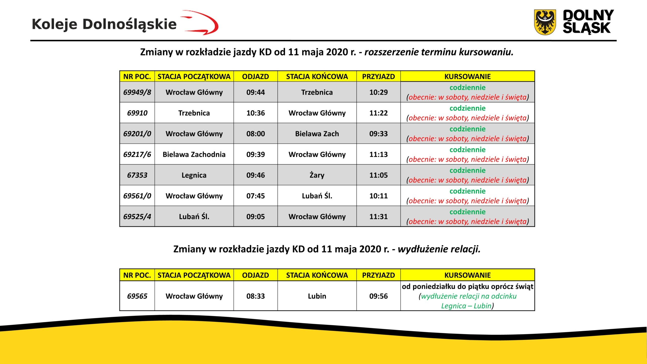 Czy ktoś w KD i UMWD zauważył, że od poniedziałku rząd wprowadza kolejny etap luzowania gospodarki i że w związku z tym sporo ludzi wróci do pracy, a co za tym idzie w pociągach będzie więcej pasażerów? Wypadałoby więc przywrócić część zawieszonych połączeń! Inne województwa przywracają połączenia, nawet PKP Intercity przywraca kursy Pendolino. A nasze KD jak zwykle śpią!