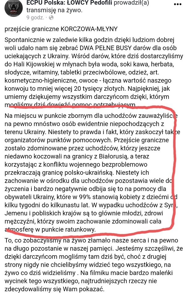 Bajzel na granicy postanowili wykorzystać nielegalni imigranci, którzy jeszcze niedawno próbowali przekroczyć granicę pomiędzy Białorusią a Polską... Płacą łapówki ukraińskiej straży graniczej, przez co są wpuszczani szybciej, a kobiety z dziećmi stoją po wiele godzin na mrozie, są wyzywane i wypychane z pociągów. Wspomniani imigranci bardzo chętnie przyjmują dary od Polaków, jedzą, śmieją się i śpią wygodnie na pryczach. Widziałem komentarz kobiety, który pojechała z koleżanką pomóc jakiejś ukraińskiej rodzinie, ale ku jej zdziwieniu na granicy zastała w większości młodych mężczyzn z Afryki i krajów bliskiego wschodu...