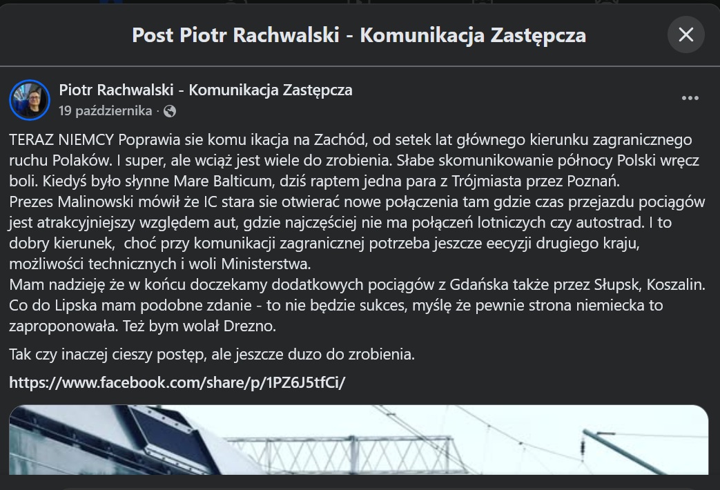 Wiceprezesa CPK Piotra Rachwalskiego jadącego pod kiblem w zatłoczonym pociągu do Lipska bym chciała najbardziej zobaczyć. Mieszka w Legnicy, więc nie jest to nierealne.